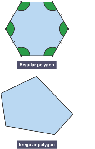 The formula for finding the sum of the interior angles of a polygon is the same, whether the polygon is regular or irregular. In every polygon, the exterior angles always add up to 360°. All regular polygons are equiangular, therefore, we can find the measure of each interior. An interior angle is an angle inside a shape. Read the lesson on angles of a polygon for more information and examples.
